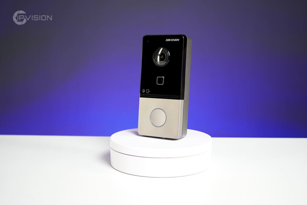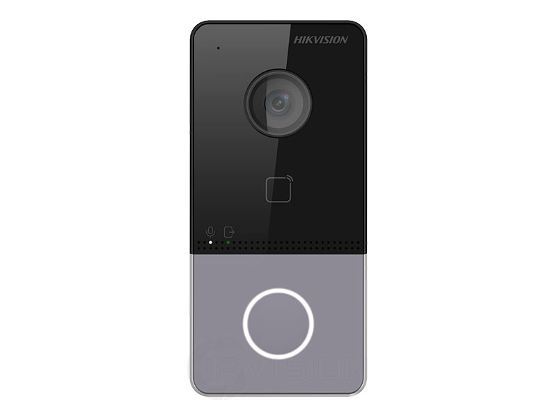 1-абонентная вызывная панель Hikvision DS-KV6113-PE1 для IP-видеодомофона оборудована считывателем Mifare, 2 Мп HD-камерой с объективом (угол обзора по горизонтали — 129°, вертикали — 75°), ИК-подсветкой дальностью действия 3 м, считывателем карт, всенаправленным микрофоном, динамиком, индикаторами вызова, связи и разблокировки, датчиком вскрытия.